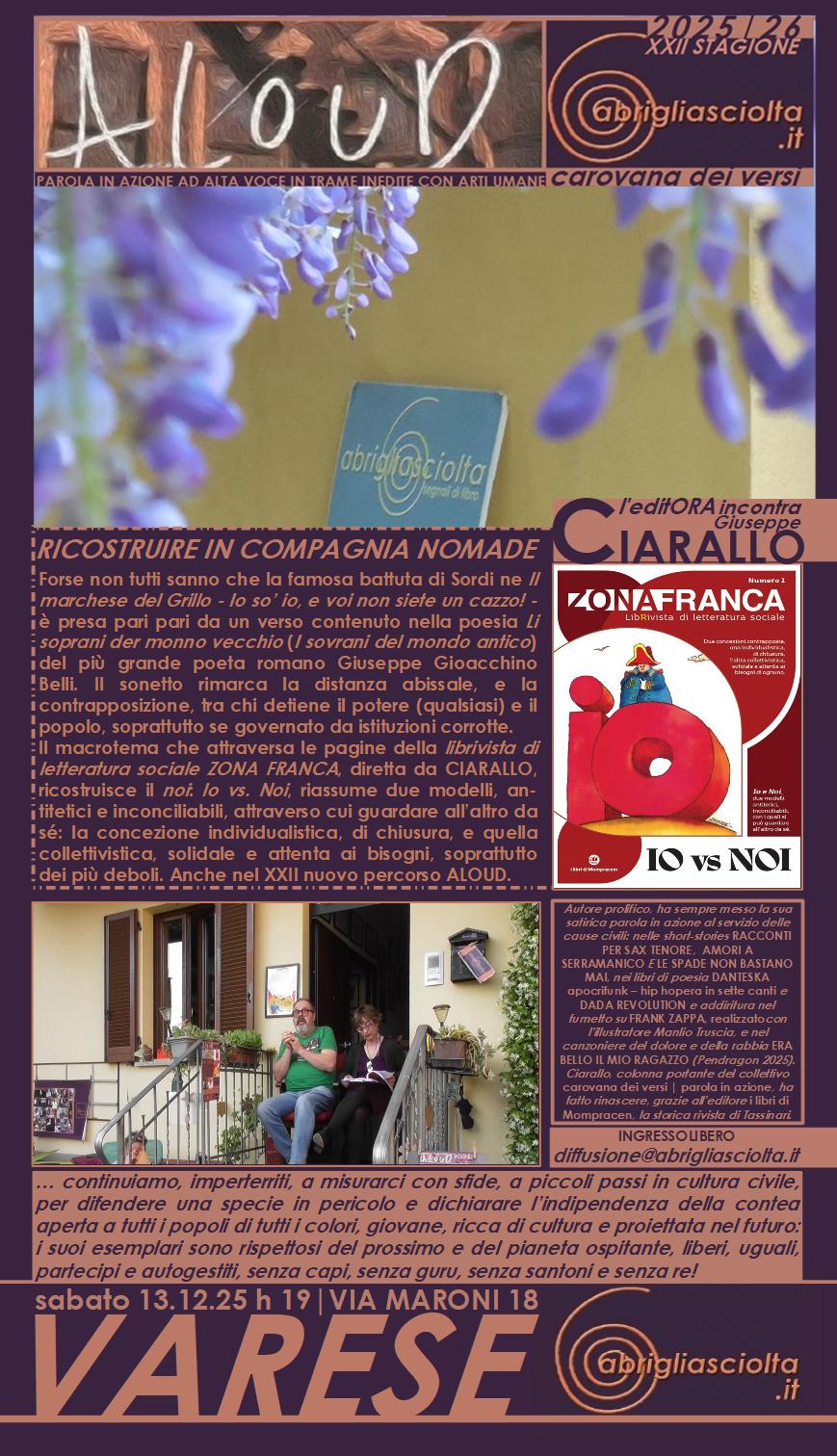 I pubblicazione dell'epopea dei migranti Il nostro amoto bardo del cambiamento ROBERT VISCUSI ha iniziato il suo nuovo viaggio Con immenso dolore proseguiamo nella valorizzazione della sua opera, mantenendo viva la memoria del poeta della migranza. Il decennale dalla prima pubblicazione di ellis island per le edizioni abrigliasciolta, previsto dal 23 al 29 marzo 2020, non è stato quello che avevamo organizzato. nel suo primo non compleanno abbiamo ricordato il caro Bob... in ottemperanza al dpcm del Presidente del Consiglio, varato il 5 marzo 2020 e valido fino al 3 aprile 2020 BOB non è più con noi, ma tra noi, sempre vicino nell'affollata stanza accanto. ALOUD|expoetryslam abrigliasciolta #ALOUD #expoetryslam #abrigliasciolta INFO bandadiversi@carovanadeiversi.it